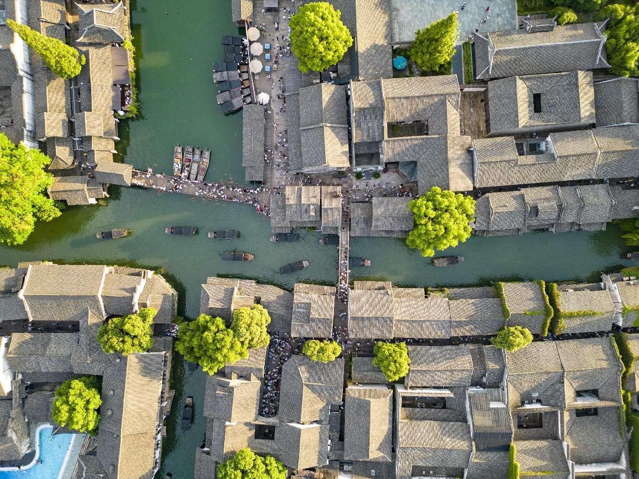 Photo shows the Wuzhen ancient town scenic area in Tongxiang, Jiaxing, east China's Zhejiang province. (People's Daily Online/Yuan Xinyu)