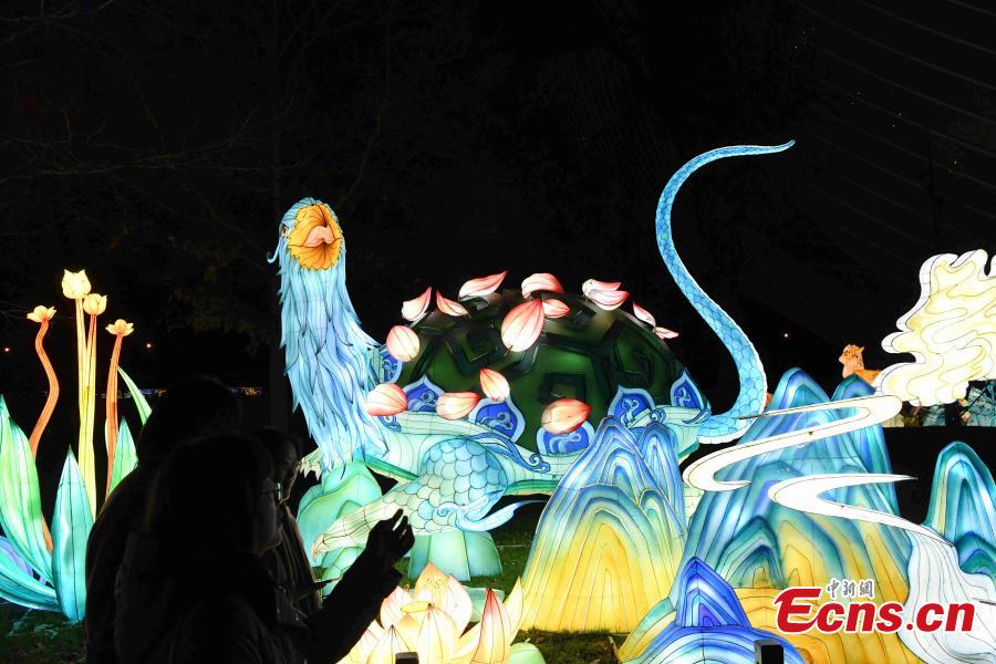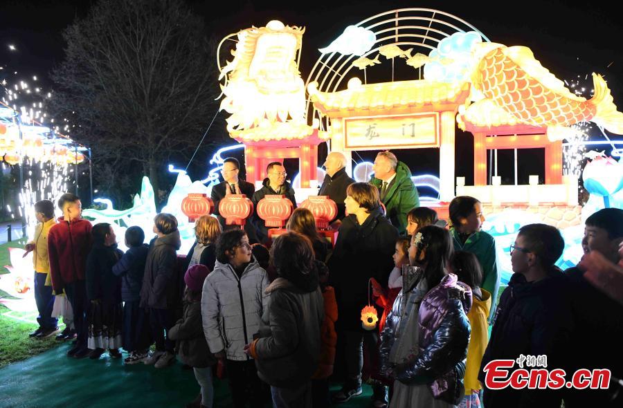 Yuyuan lanterns are illuminated during the French Yuyuan Garden Lantern Festival in Paris, France, Dec. 13, 2023. (Photo: China News Service/Li Yang)