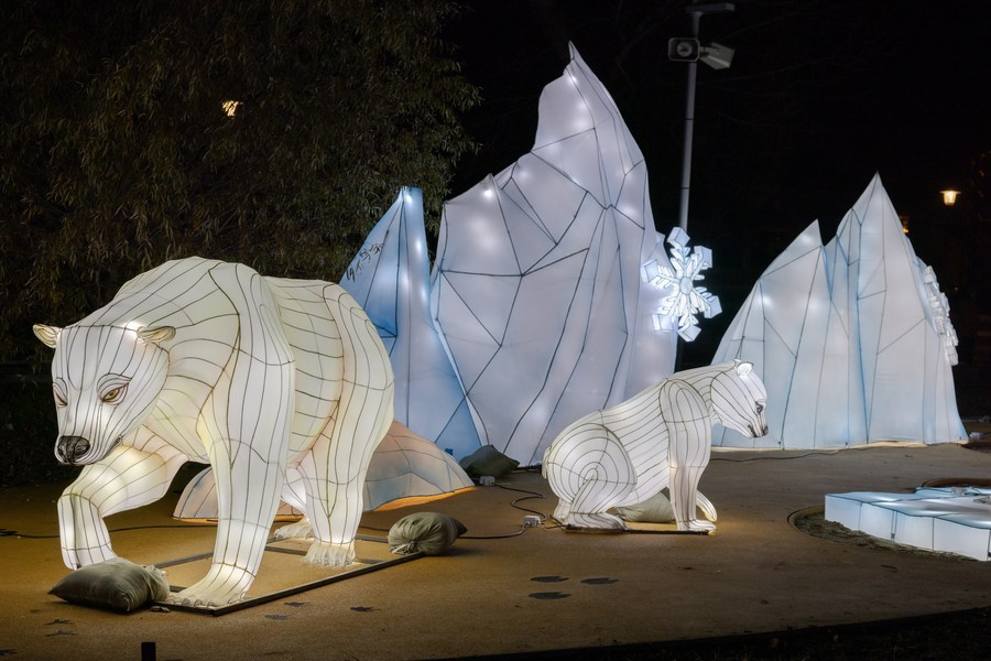 Lanterns are displayed at the Year of the Dragon Lantern Festival in Budapest Zoo in Budapest, Hungary, Dec. 16, 2023. (Photo by Attila Volgyi/Xinhua)