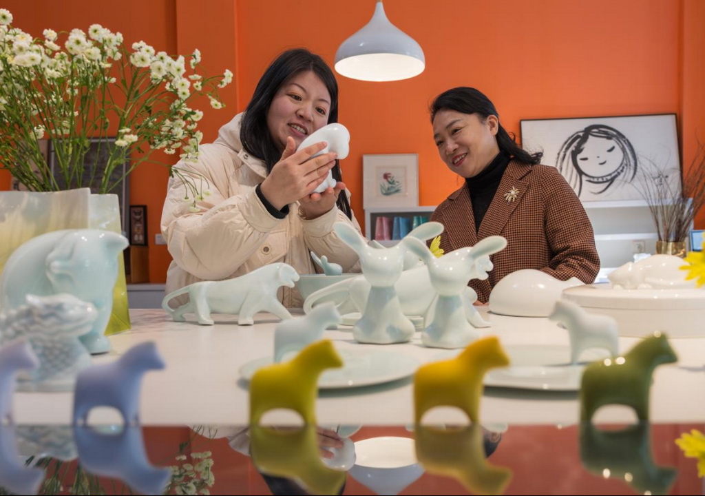 "Every year, I create a series of ceramic artworks based on Chinese zodiac animal signs. As 2024 marks the Year of the Dragon in the lunar calendar, I have already received orders from several companies. The first batch of dragon-inspired ceramic products is about to be sent out," Wu said to Sheng Jingjing, director of the Jingdezhen Municipal Bureau of Culture and Tourism.