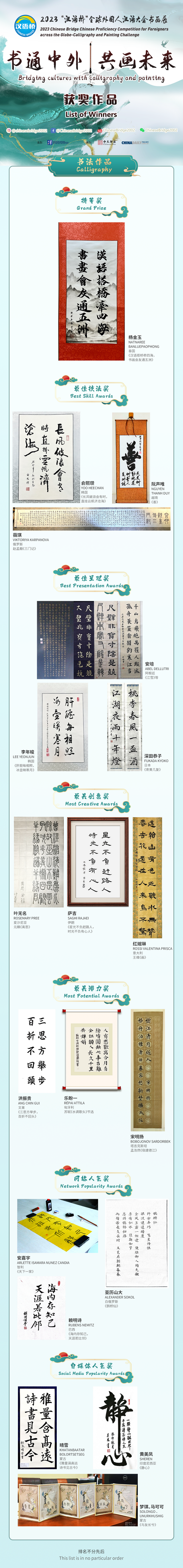 The 2023 Chinese Bridge Calligraphy and Painting Contest lasted for six months and attracted 1,084 contestants from 86 countries with a total of 1,146 calligraphy and painting works.