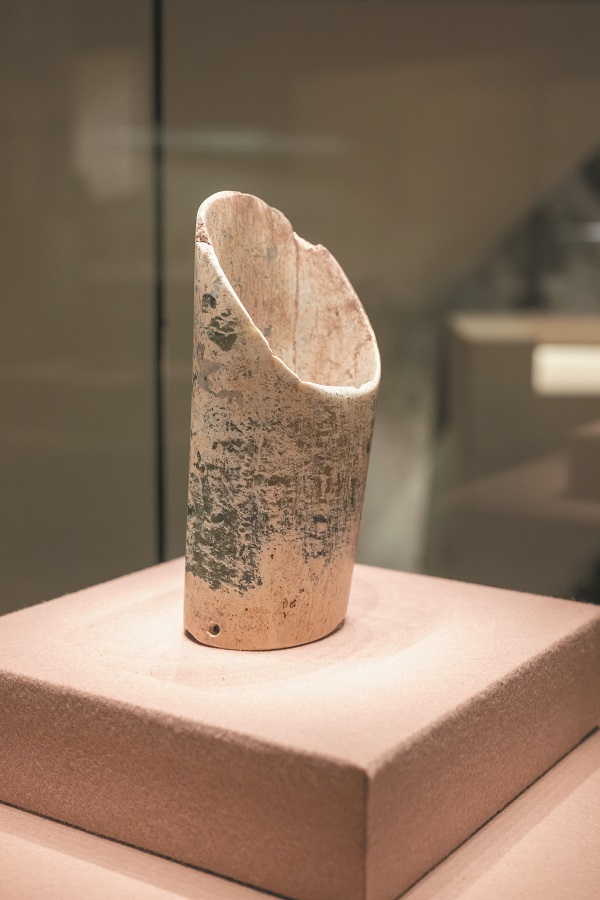 A tubular jade artifact of the Hongshan culture is displayed in an exhibition at the National Museum of China in Beijing on Nov 10. CHINA DAILY