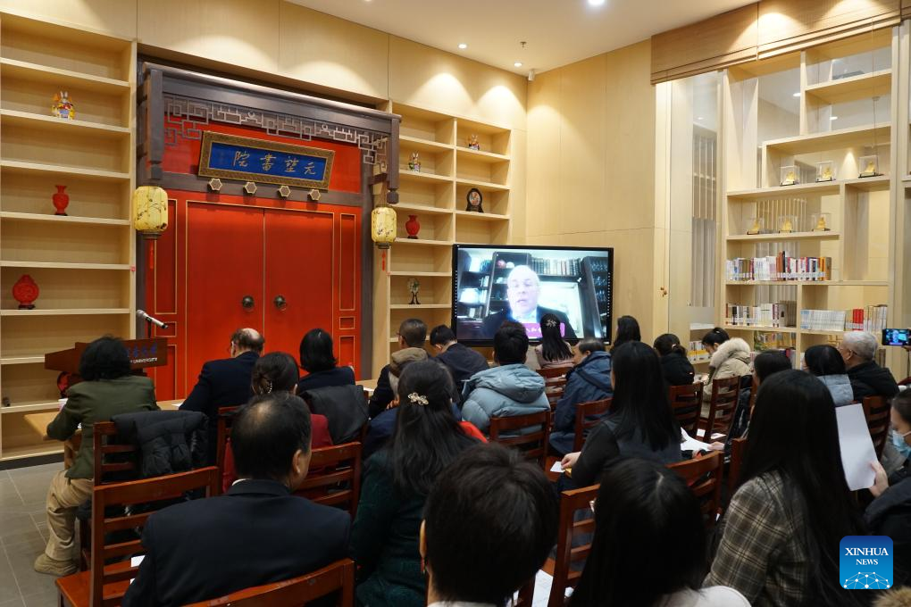 This photo taken on Jan. 19, 2024 shows the launch ceremony of the book "Rabe and China" hosted by Beijing Union University and Research Press in Beijing, capital of China. (Xinhua/Tai Sicong)
