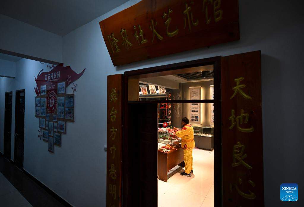 A folk artist prepares for a national Shehuo competition in Guyuan, northwest China's Ningxia Hui Autonomous Region, Feb. 24, 2024. (Xinhua/Feng Kaihua)