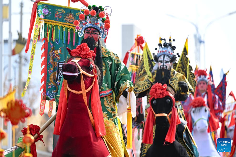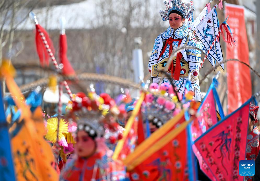 Folk artists perform during a national Shehuo competition in Guyuan, northwest China's Ningxia Hui Autonomous Region, Feb. 24, 2024. (Xinhua/Feng Kaihua)