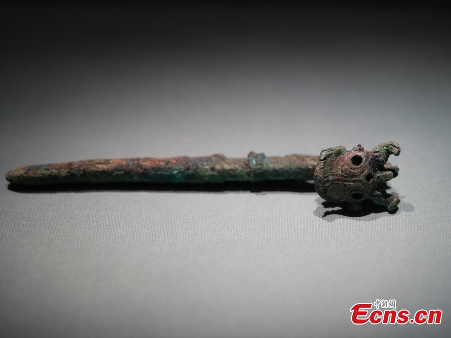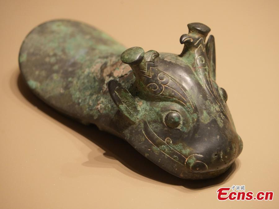 An artifact featuring an animal is displayed at the new Yinxu Museum in Anyang, central China's Henan Province, Feb. 25, 2024. (Photo: China News Service/Kan Li)