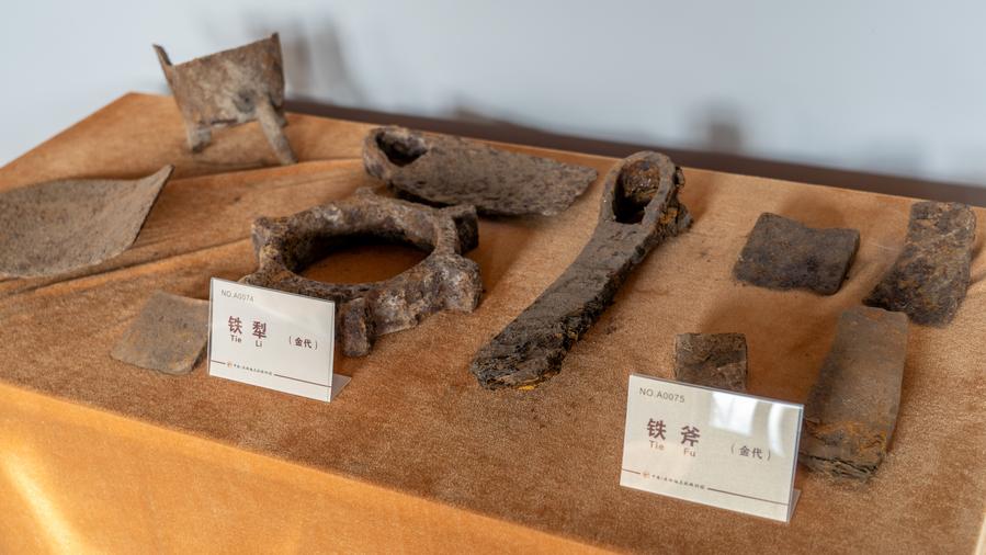 Traditional farming implements are displayed in a museum focusing on Mahu Opera, a traditional art of the Manchu ethnic group, in Shuangyang District, Changchun, northeast China's Jilin Province, Jan. 29, 2024. (Xinhua/Tang Chengzhuo)