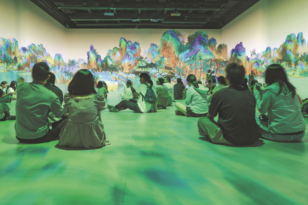 Visitors enjoy a high-resolution version of a Chinese painting at Ningbo Art Museum in Ningbo, Zhejiang province in July, where the show Compilation of Classics in the Flourishing Age based on the book project was held. CHINA DAILY