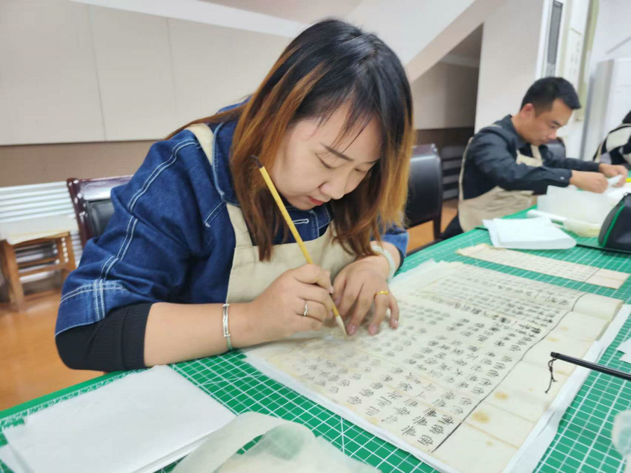 Heritage workers repair ancient scriptures at the Cultural Relics Research Institute of the Zhangye Dafo Temple in Northwest China’s Gansu province on Oct 17, 2024. [Photo by Yang Xiaoyu/chinadaily.com.cn]