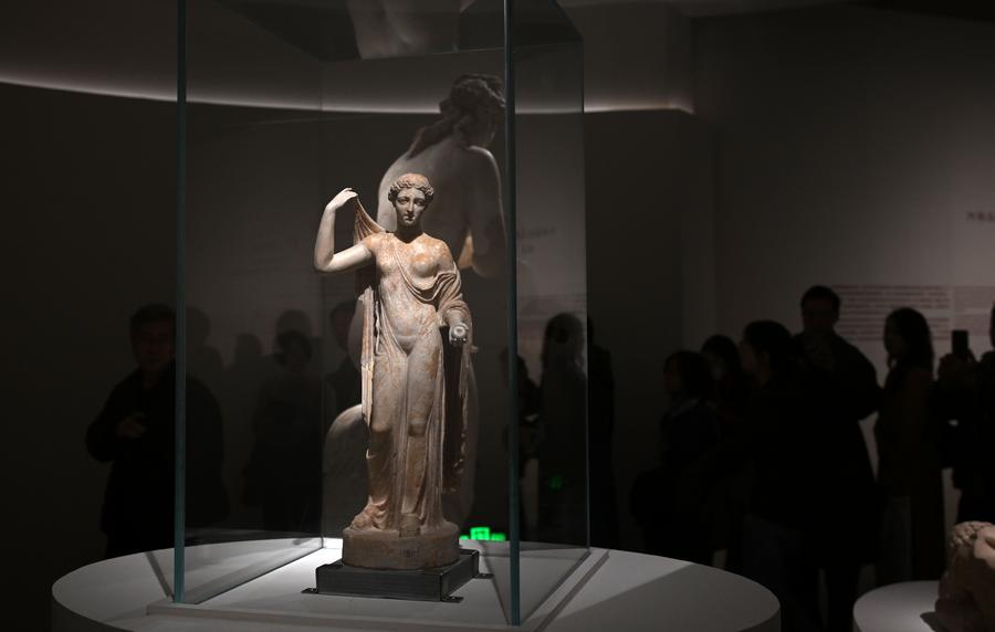 This photo taken on Dec. 3, 2024 shows a marble sculpture of Aphrodite at the National Museum of China in Beijing, capital of China. (Xinhua/Jin Liangkuai)