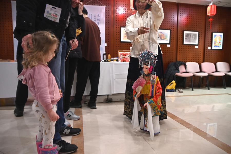 A young girl watches a puppet during a temple fair at the China Cultural Center in Valletta, Malta, on Feb. 8, 2025. The temple fair celebrating the traditional Chinese Spring Festival was held here on Saturday, drawing around 300 attendees eager to experience the richness of Chinese culture and intangible cultural heritage. (Photo by Jonathan Borg/Xinhua)