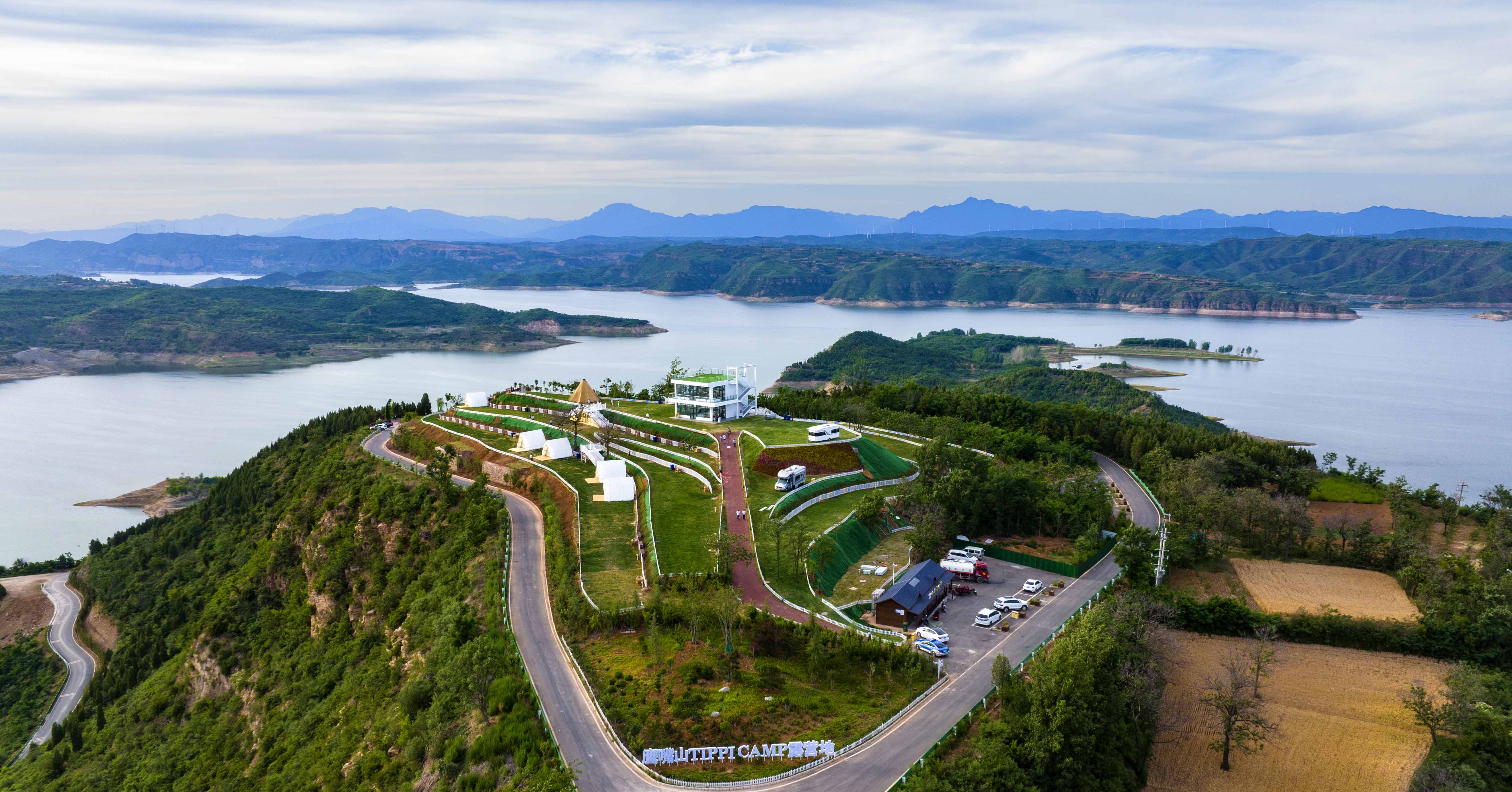 Aerial photo shows the Yingzui Mountain campsite in Xin'an county, Luoyang, central China's Henan Province. (Photo courtesy of Xin'an county's convergence media center)
