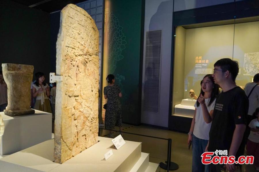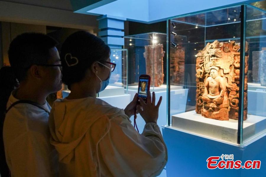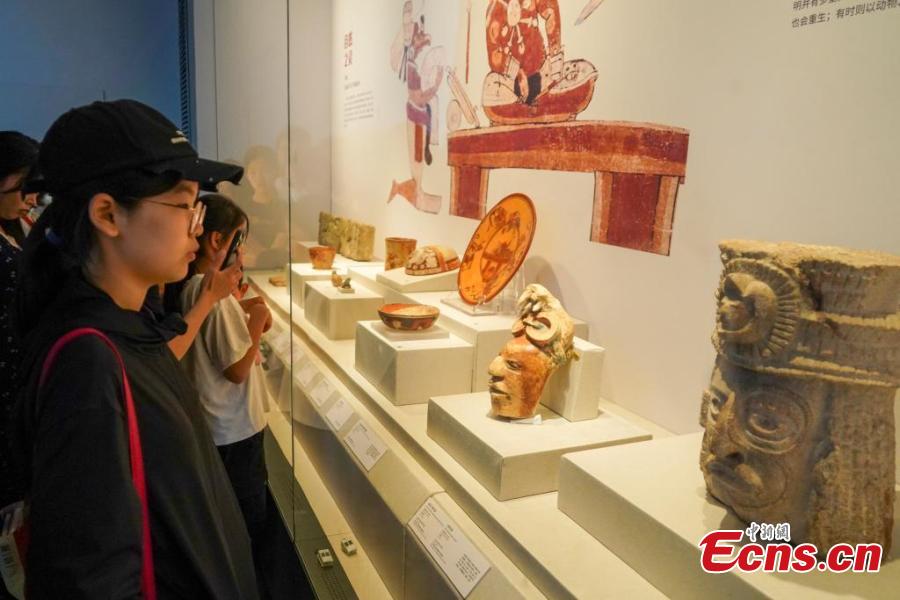 People view exhibits at the exhibition "Mayas, Ceiba and Cosmos" at the Henan Museum in Zhengzhou, central China's Henan Province, June 1, 2025. (China News Service/Fan Xiaoheng)
