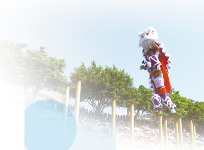 At Tianhu Park in the Xiqiao Mountain scenic area in Nanhai district, Foshan, south China's Guangdong Province, 82 piles of varying heights rose from the water. Two lion dancers leapt onto the piles, performing thrilling maneuvers on the 20-centimeter-diameter tops to thunderous applause from spectators.