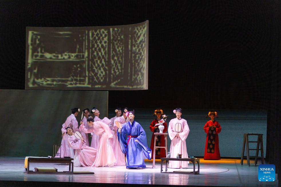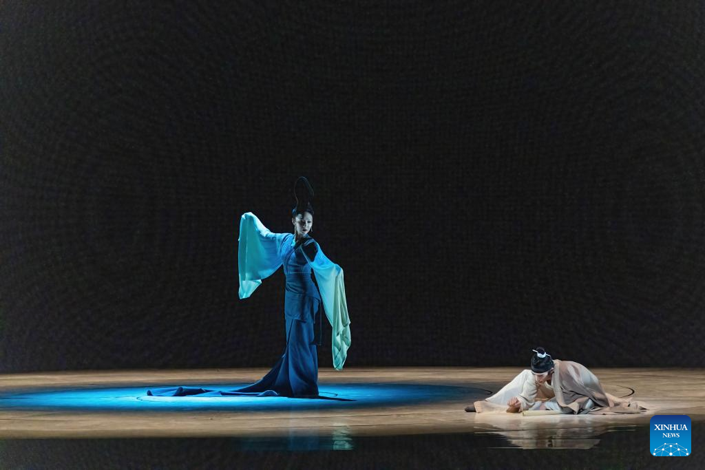 Chinese dancers perform The Journey of a Legendary Landscape Painting, a poetic dance drama, at the David H. Koch Theater at Lincoln Center in New York, the United States, on Jan. 10, 2025. (Photo by Winston Zhou/Xinhua)