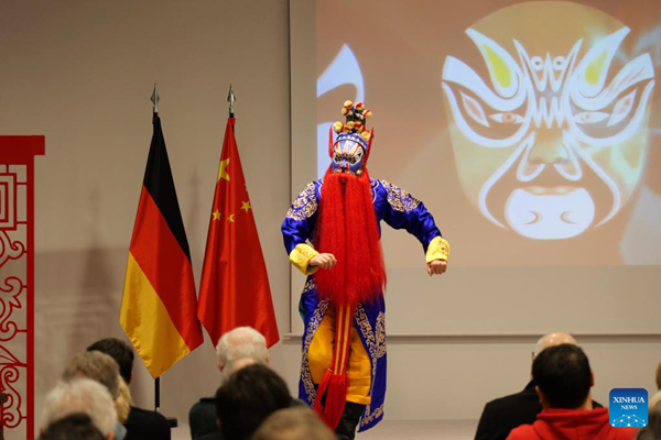 An actor performs Peking Opera during a cultural event at the Chinese Cultural Center in Berlin, Germany, Feb. 8, 2025. (Xinhua/Tai Sicong)