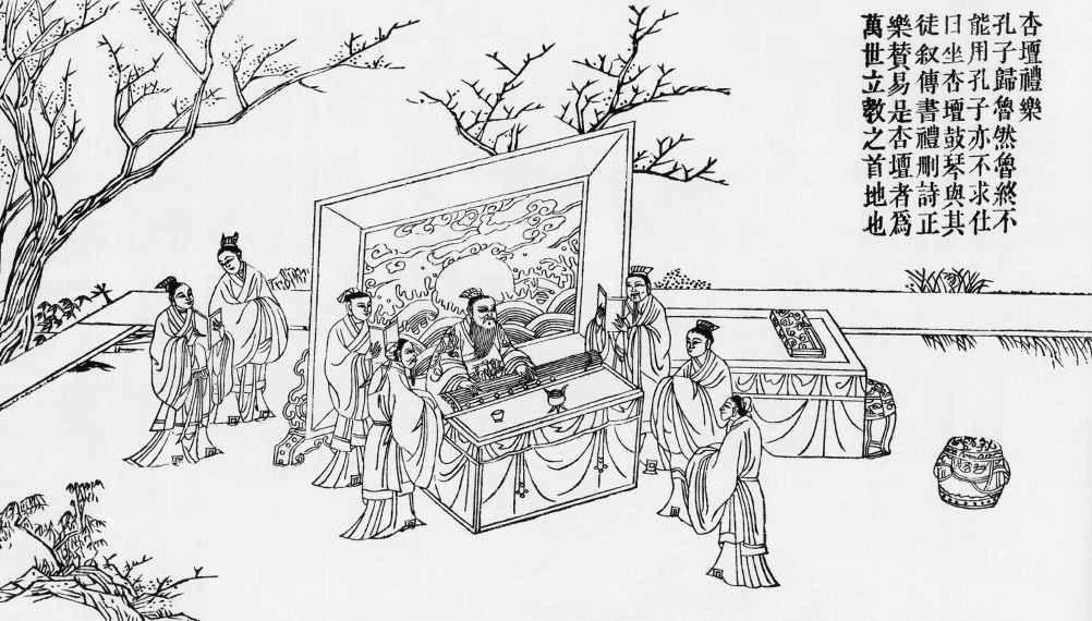 After Confucius returned to Lu state, the monarch didn't put him in important positions, and Confucius also did not expect to be an official. He sat on the Xing altar with his disciples every day, playing the qin, collating, editing and teaching ancient documents, such as The Book of History, The Book of Rites, The Book of Songs, The Book of Music and The book of changes. Therefore, the Xing altar has become the sacred place for teaching to later generations since then.