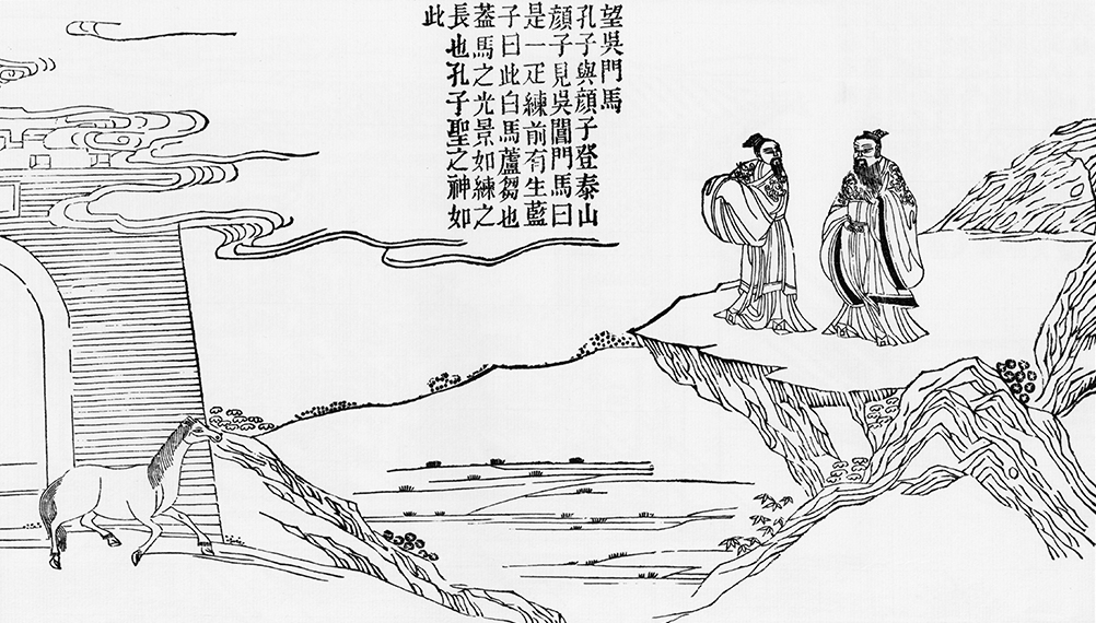 When Confucius and Yan Hui ascended Mount Tai, Confucius saw a white horse tied outside the gate of Suzhou, the capital of Wu state. He asked Yan Hui, "Can you see the gate of Wu state?" Yan Hui replied, "Yes, sir." Confucius then asked, "Can you see what's outside the gate?" "It's like a white silk," Yan Hui replied. But Confucius said, "No, it's not. It's a white horse." Confucius stood high and saw far, so he could see the white horse. Later generations built a memorial archway here to commemorate Confucius.