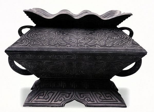 銅製,孔子廟の祭器で稲やキビなどの食物を盛る。蓋の内側に楷書で、“大清雍正庚戌年造”(1730)と記されている。