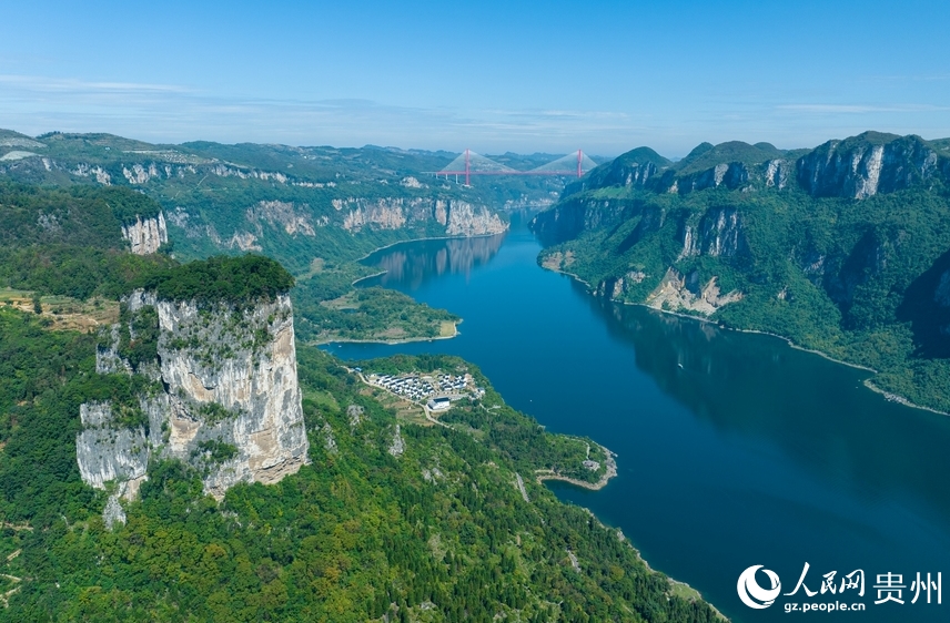 人民網の「一帯一路」(the Belt and Road)青少年友好交流プロジェクトである「中国のチャンス・アジア太平洋地域のメディアが見た貴州」をテーマとする視察団一行が10月24日、貴州省黔西市新仁郷化屋村を訪れ、峡谷の見事な風景を鑑賞し、苗(ミャオ)族の風俗文化を体験した。