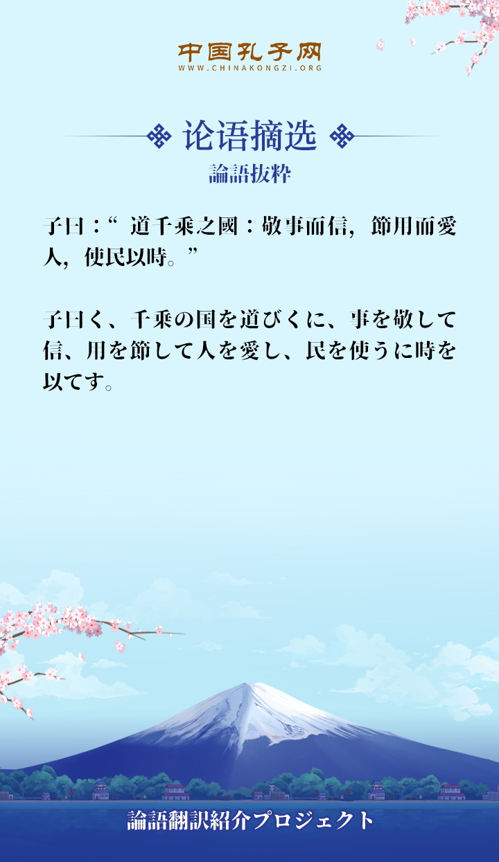 子曰く、千乗の国を道びくに、事を敬して信、用を節して人を愛し、民を使うに時を以てす。