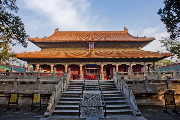 曲阜孔子廟は山東省曲阜市中心部の鼓楼西側にある。魯の哀公十七年(紀元前478年)に建造が始まり、数多くの増改築を経ている。前漢以来、歴代の皇帝が絶えず孔子に諡を与えるにつれ、孔子廟の規模も大きくなり、全国最大規模の孔子廟となった。現存の孔子廟の大部分は明清時代に完成したもので、敷地面積は218,000㎡、南北にかけて9つの中庭がある。廟の中には、殿堂、壇閣、門坊など464の部屋がある。周囲は赤い壁で囲まれ、四隅に角楼が配されるのは、北京の故宮を模倣した修築である。建築家の梁思成は曲阜孔子廟を世界建築史上で類を見ないものと称賛した。