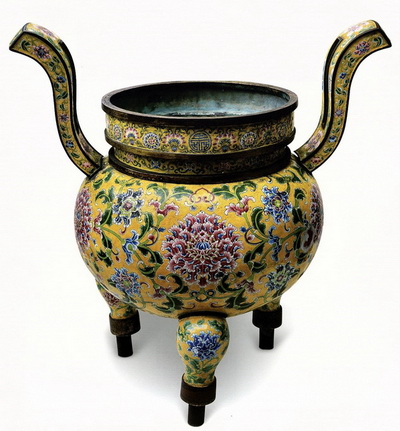 황지채회전지목단문동태주법랑향로 청나라 옹정