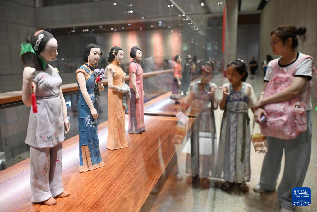 8월 7일, 방문객들이 행사장에서전통공예품을구경하고있다. [신화사리허기자촬영]