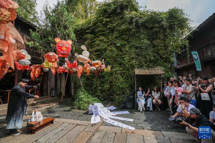 거리 퍼레이드 공연 중 목공 인형극 ‘장진주’(將進酒) [10월 17일 촬영/사진 출처: 신화사]