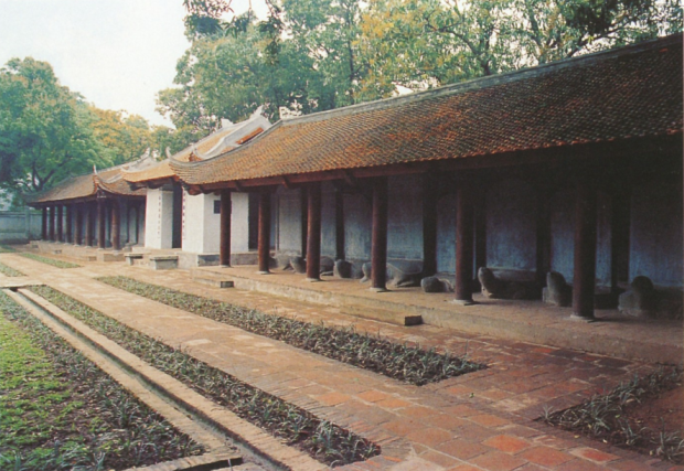 베트남 최초의 국학대학인 공자를 존경하고 유교를 송상하는 상징으로써 하노이(河内)에서 거의 모든 사람들이 문묘를 알고 있다. 1070년 베트남 이씨 왕조 황제 이성종(李聖宗)은 승룡성의 남쪽에 문묘를 짓기로 한다. 주공과 공자, 그리고 사배와 72현인을 모시는 동시에 황친국척의 자손들을 공부하게 하였다. 처음부터 문묘는 국학당 기능을 겸하고 있었다. 문묘는 하노이의 대표적인 건축물로 전형적인 중국식 건축물이고 국내 여러 곳 있는 문묘와 비슷한다. 지금 보유하는 건물은 대부분 17세기 이나라 때 지어진 것이며, 부지 면적은 약 26,000㎡이고 남쪽을 향하고 있다.건물 전체는 5개의 마당으로 이루어져 있고 문 밖에 하마비가 세워져 있는데 문묘문은 전형적인 동양 사찰 양식이다. 대배당 한 가운데에는 '만세사표(萬世師表)'라고 쓰인 한자 현판이 '강희어서(康熙御書)'라고 적혀 있다. 정전에는 공자 동상이 있고 양쪽에 중국과 베트남의 유학 대사들을 모시고 있다. 다른 곳과 다른 점은 공자와 사배(四配)의 두루마기가 모두 명나라 양식으로 되어 있어 명나라 때 베트남 유학이 절정에 달했음을 반영한다.그 중 대성문, 대성전, 규문각에는 여러 대련이 있어 공자와 유학에 대한 존경도 표현하고 있다. 톈광징(天光井)동서 양쪽에 배열하는 82개의 진사(进士)비석을 통해 시안비림의 풍격도 살짝 볼 수 있다.