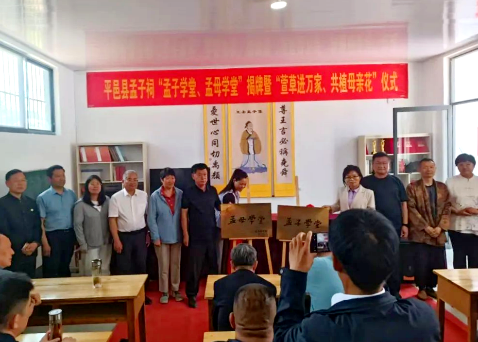 5月24日,孟子研究院、平邑县孟子祠管委会在孟子祠隆重举行孟子学堂、孟母学堂揭牌仪式,同时开展 “萱草进万家,共植母亲花“活动。孟子研究院、平邑县纪委、中华母亲节促进会、河南省儒家文化促进会、平邑街道文化站等单位代表、孟子祠管委会全体成员及学堂学生100余人参加活动。