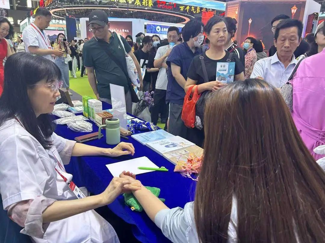 在知名中医和AI双诊体验区,“扁鹊脉学诊法”项目代表性传承人与东阿阿胶“中医人工智能体质辨识系统”同台问诊。同步运行的“AI舌诊魔镜”扫描观众面容,10秒左右即可生成电子报告。同时,遨博超V热疗机器人的机械臂可以精准为观众施灸——红外热成像锁定穴位,碳纤维发热模块模拟艾灸温感,让《黄帝内经》“温通经络”的智慧化作可量化的科技疗愈。