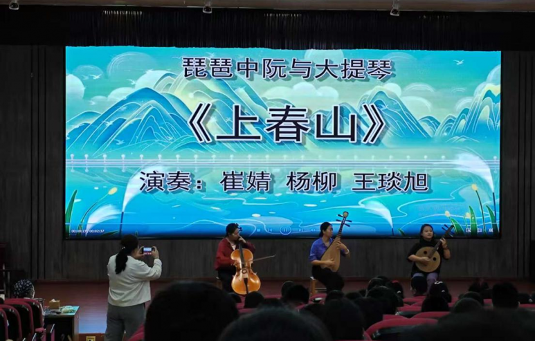 活动现场,一场兼具专业性与观赏性的民乐展演成为焦点,琵琶、中阮、古筝、二胡等民族乐器与西方乐器大提琴跨界融合,为观众带来一场听觉盛宴。展演中,不仅有精彩的器乐演奏,更穿插了细致的乐器知识讲解,让观众在聆听美妙旋律的同时,深入了解民族乐器的历史与特色。