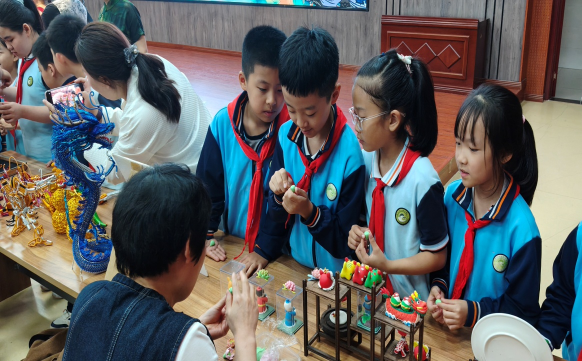 除了精彩的文艺展演,非遗体验区同样人气爆棚。泰山素女饺、泰山结绳编织、泰山金属编艺、泰山面塑四项极具地方特色的非遗项目集中亮相,让孩子们近距离感受非物质文化遗产的独特魅力,亲手触摸泰山文化的温度。