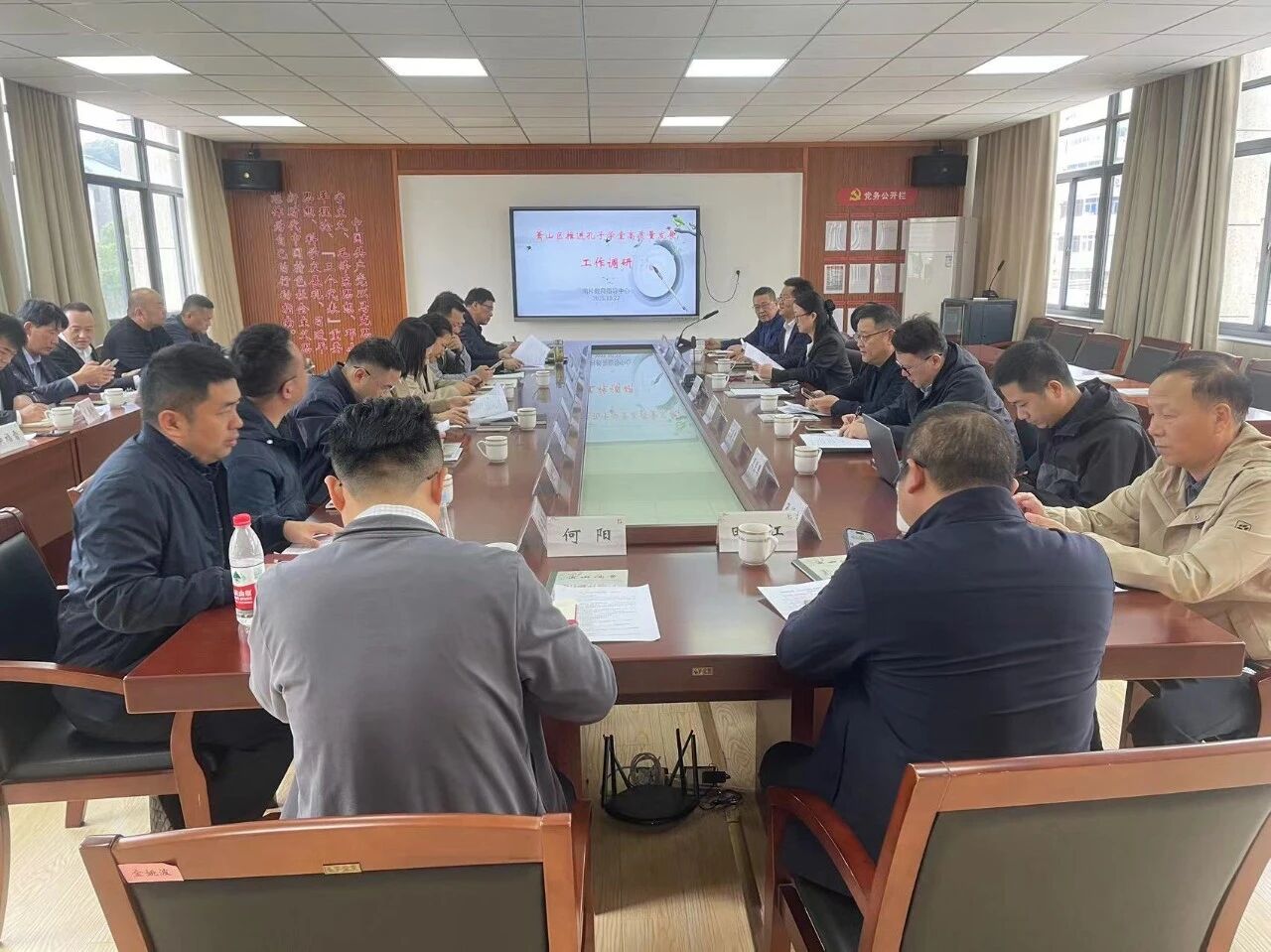 10月22日,浙江省杭州市萧山区社科联、区文化创意发展中心、区儒学学会联合赴南片教育指导中心联合开展孔子学堂高质量发展专题调研活动。区政协原副主席汤金友,区社科联副主席王登承,区文化创意发展中心副主任胡敏华,楼塔镇党委宣传委员徐卿、文教民政分管副镇长沈佳明,河上镇党委宣传委员陶梁,戴村镇党委宣统委员张晓玲,区儒学学会副会长孙海尧,名誉副会长、萧山孔子学堂主任周陈国,南片教育指导中心书记、主任韩东兴,督学责任区主任来水义,各中小学校长参加。区社科联副主席陈鼎攀主持调研会。