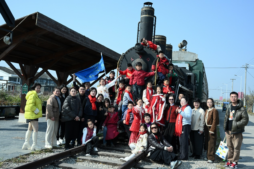 活动最后,大家来到复古老车站。黑亮的蒸汽火车头沐浴着冬日暖阳静静伫立在铁轨上,木质站台的斑驳纹理诉说着岁月的故事。孩子们兴奋地爬上车头、围在轨道旁,与家长们一同留下了幸福温馨的合影。本次游学活动在一片暖意与欢笑中圆满落幕。