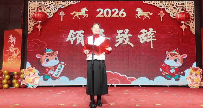 研究会党支部书记、副会长,六一幼儿园园长王丽娟登台致辞,向全体来宾致以新春祝福,回顾研究会与幼儿园一年来在文化传承与教育实践中的扎实工作,并展望未来,期待继续携手传播传统之美。
