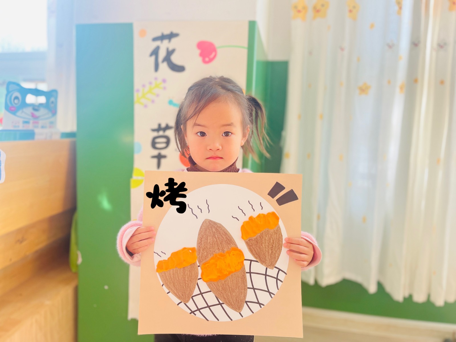小二班以画寄情,定格冬日里的温暖滋味。该班围绕大寒暖冬主题,组织幼儿开展烤红薯绘画活动。孩子们凭借丰富的想象力,用画笔勾勒出圆滚滚的红薯,以橙黄色调渲染出软糯香甜的薯心,仿佛一盘冒着热气的烤红薯跃然纸上。这幅充满童趣的作品,不仅展现了孩子们的绘画天赋,更藏着他们对冬日温暖的感知与喜爱,让课堂充满了烟火气与暖意。
