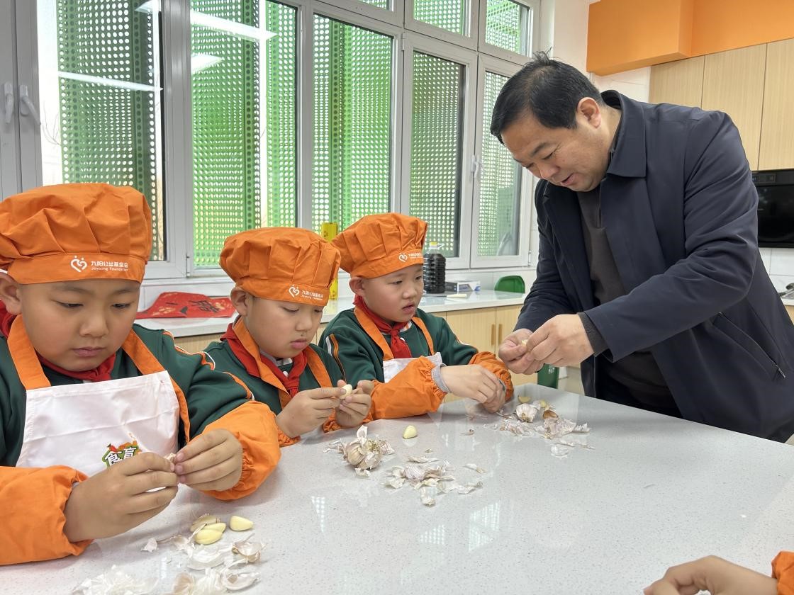 课程开始前,学校准备了蒜、米醋、糯米、红枣等多种食材,并对所有原料进行了严格的安全检查。老师向学生们讲解了腊八节的民俗渊源与饮食文化,从“腊八腌蒜”的时间讲究,到“腊八粥”的五谷搭配,将节气智慧与生活常识娓娓道来。