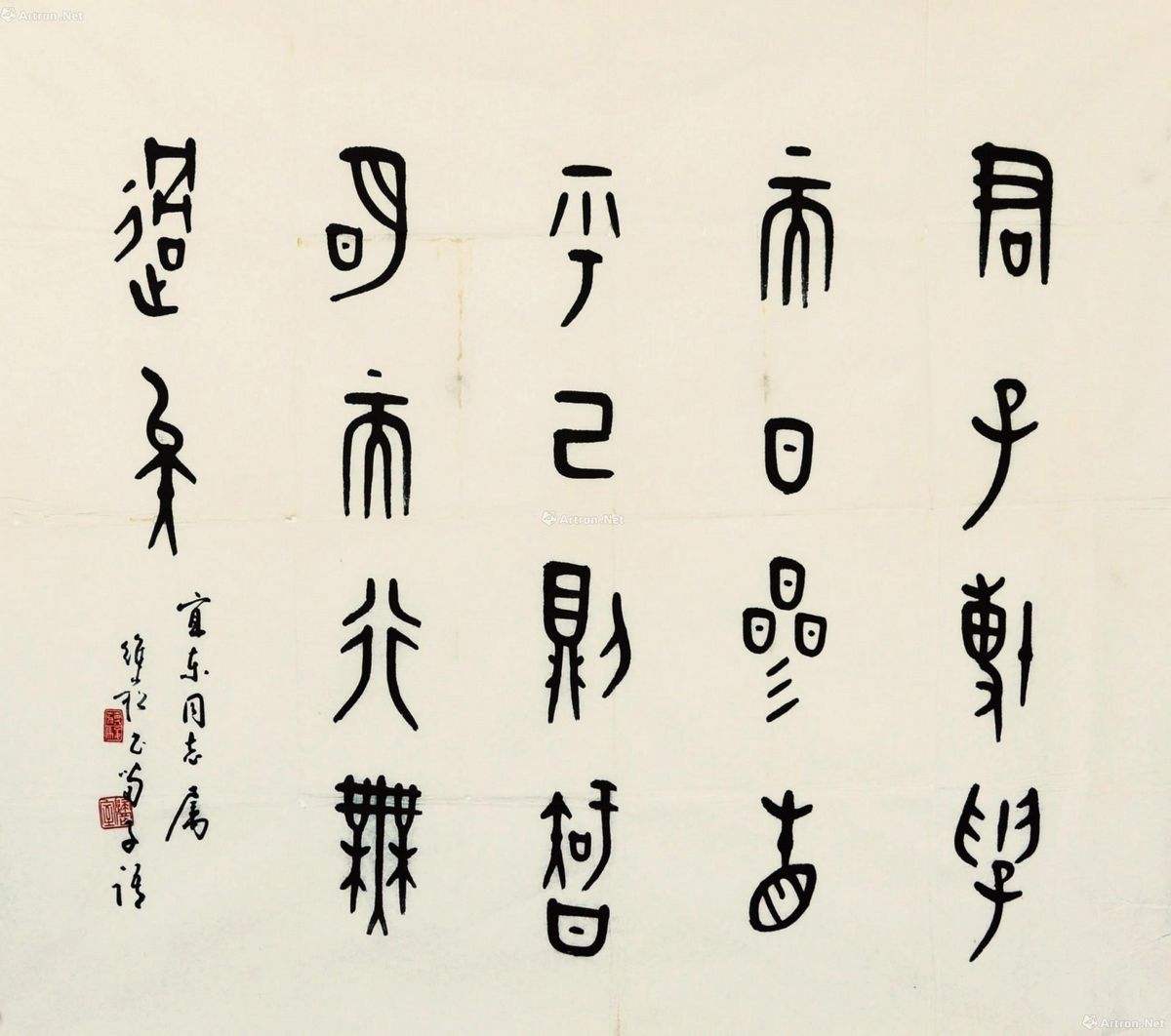 这二类作品各有特色,其中有些甚至达到了当时的最高水平。但由于整个社会从事金文书法艺术实践的时间不长,同隶、楷、行、草等书体相比,其总体水平就显得相对落后了。如第一类,作者在书写时多自觉不自觉地运用了小篆笔法,线条平均,结体和章法都过分整饬,很难用笔墨表现书家个性。后两类显然是受邓石如以来碑风的启发和影响,硬是用毛笔、水墨、宣纸等柔性材料去表现刻铸工艺中的“金石气”——甚至还要加上“泐损气”,如果表现手法不当,难免弄巧成拙。
