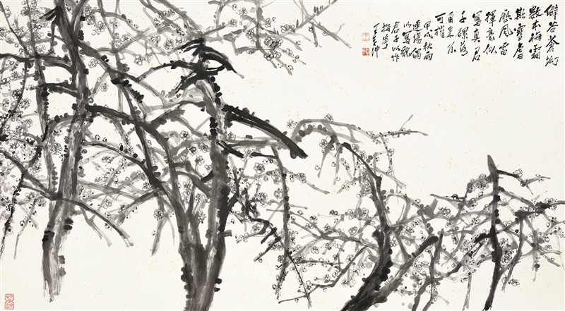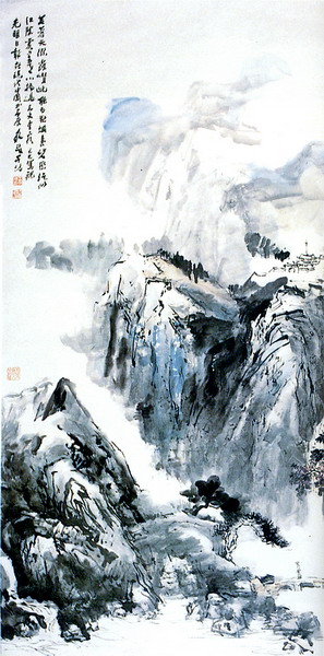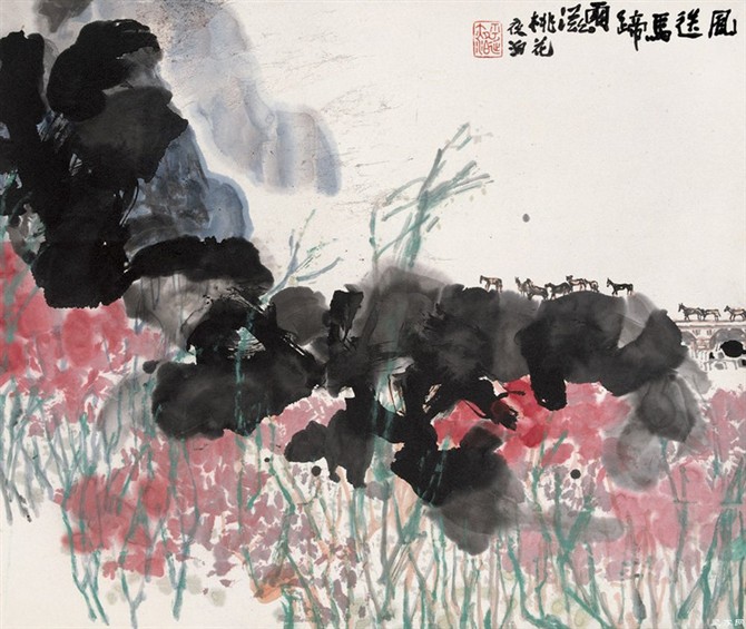 王学仲山水艺术的气质来源于他对汉文化充盈把握后流露出的那份从容和定性,也在于他东西技法融而合之的均衡柔和。对于七十多岁的王学仲先生来说,绘画状态较之中青年山水画人更具进步性和个性,格高,有强烈而不事雕饰的自我存在。相比之下,他的花鸟人物可以讲是画得好,还达不到高贵的程度。