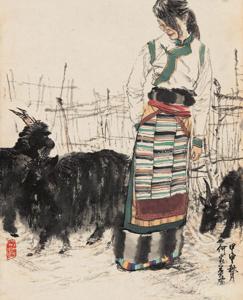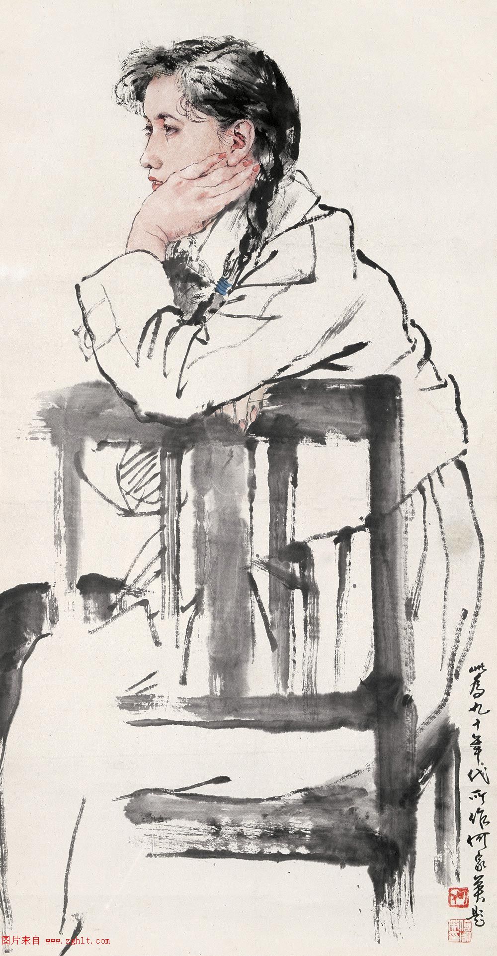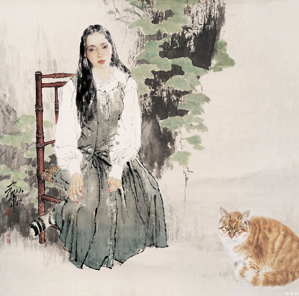 何家英为中国工笔人物画向当代性的转型做出了自己的贡献。他创造性地借鉴了中国工笔画的传统和西画中严谨扎实的造型技法,结合当代人的审美观点,创作出一大批洋溢着时代气息的作品。读他的画,会从中找到一种真诚细腻的激情和梦幻般的理想色彩。