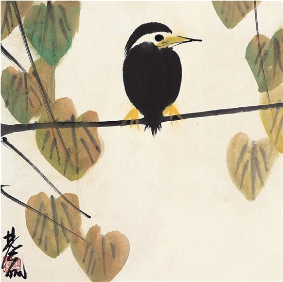林风眠毕生追求个性和诗意的创造,不同时期钟爱的题材很多,其中有一类“枝头小鸟”题材。这次展览中也有两张,一张画的是颇似垂垂老者慵懒漫步的乌鸦,一张是貌如初生、憨态尽陈的猫头鹰。我看过这一题材的画作不少,印象极为深刻的是1960年代画的题为《立》的一张。简单到不能再简单的方纸构图,中央一抹横枝之上,一只椭圆身子、长嘴大眼的小鸟侧头而立,无比简省又平面化,更谈不到什么高妙的笔墨之法,全如稚拙可爱的儿童画,用一个流行词来描述,叫“呆萌”。而林氏这一类作品却特别吸引我。观此画者,可以觉得这小鸟是孤独的,因为与林氏笔下其他众鸟栖枝的作品相比,这单枝孤鸟的形象确实显得有些清冷。但细往深处看,似又不全是孤独感的呈现,更多的是人性光芒的闪动。一份超越时空、不容亵渎的纯粹和天真扑面而来,映照出林风眠胸中那颗干干净净的心。