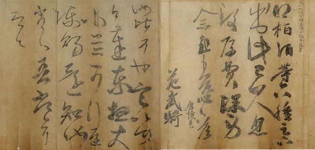 王慈《栢酒》《汝比》帖 于辽宁省博物院藏的《唐摹万岁通天帖》