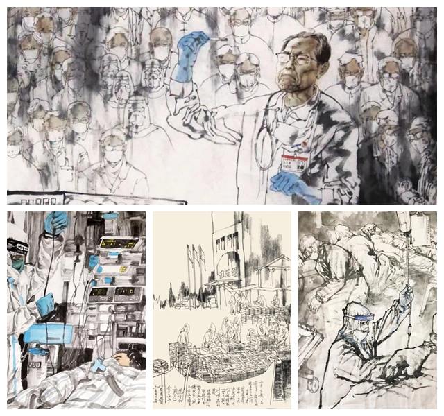 面对疫情,画院系统的书画家们创作了一批防疫抗击肺炎主题的美术书法作品,山东画院在官方微信公众号等书画平台拟出六期网络展。