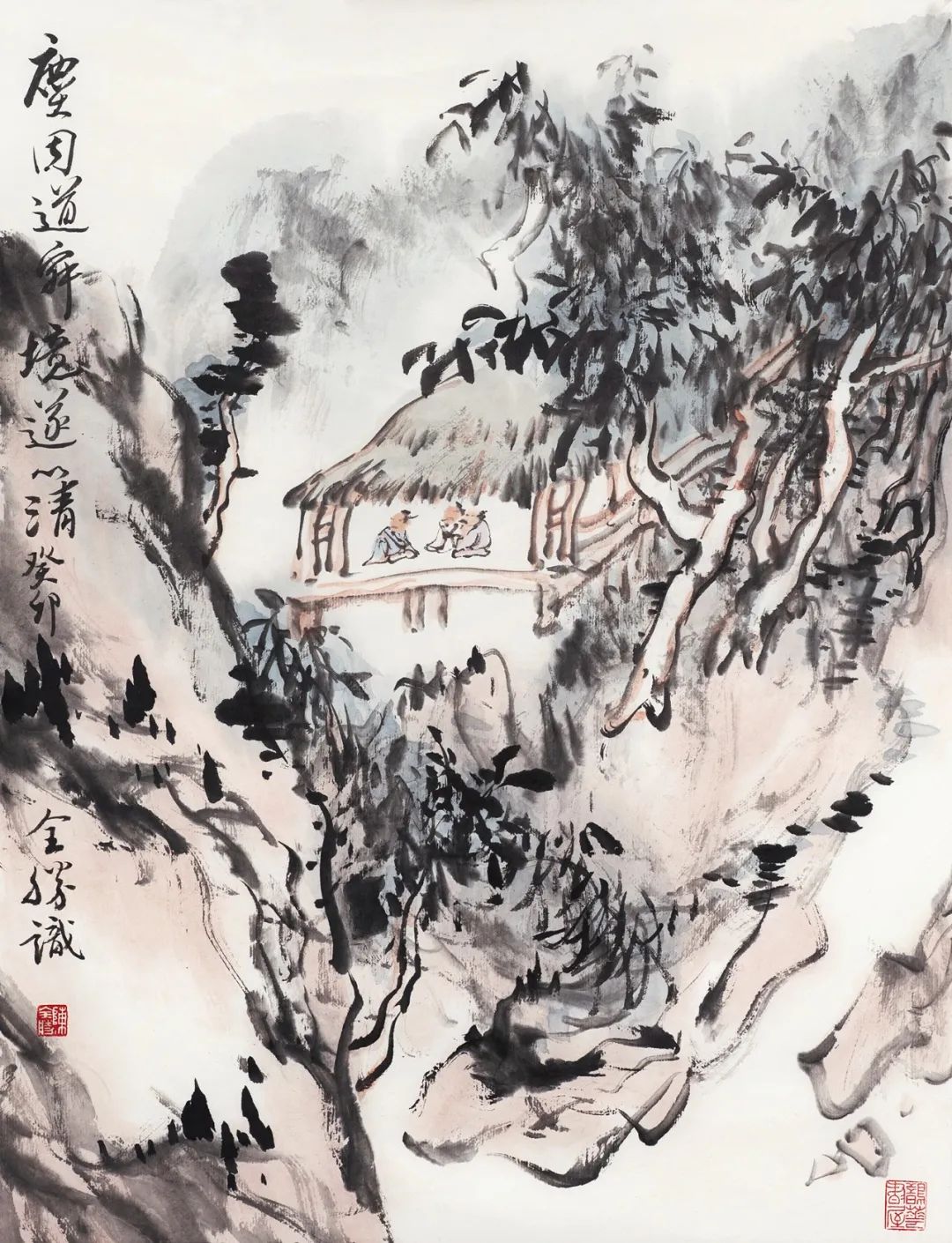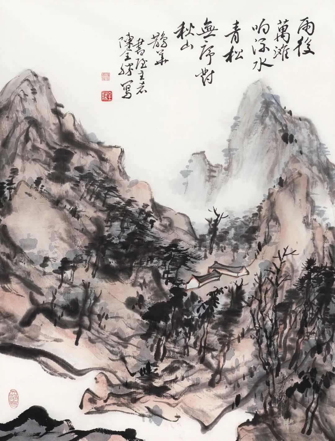 陈全胜先生的山水画是建立在他对大自然切身感受的基础上,并随着他人生、心境追求的变化而变化,先生年逾古稀,依旧不满足以往的艺术成就,始终探索着新的理解和新的表达。他的每幅作品既有一气呵成的构图,又有耐看耐品的笔墨细节,笔意灵巧拙秀,画面自然天真,内容深沉厚实,格调高古宁静。在他眼里,从古至今,人们对山水均有着原始的崇拜与敬畏,一山一水,一静一动,似乎蕴涵着天体宇宙无限奥妙。这一山一水带来的不仅是审美的享受,更能陶冶艺术家的情性,激发创作的无限灵感。