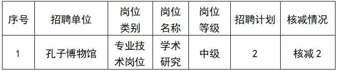 尼山世界儒学中心(中国孔子基金会秘书处)及所属事业单位关于2025年公开招聘人员报名工作已经结束。由于报名人数不足,根据相关规定,现将核减人数情况予以公告。