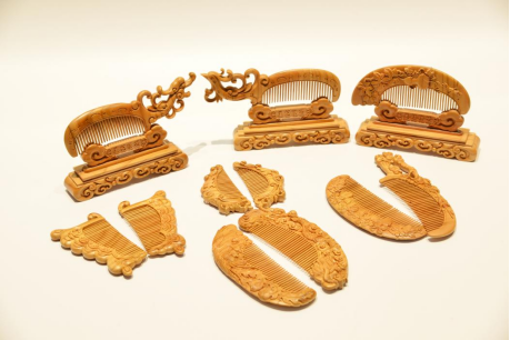 肥城桃木雕刻多以当地独有的佛桃木为原料,木质坚硬、木体清香、色泽金黄、赏心悦目。