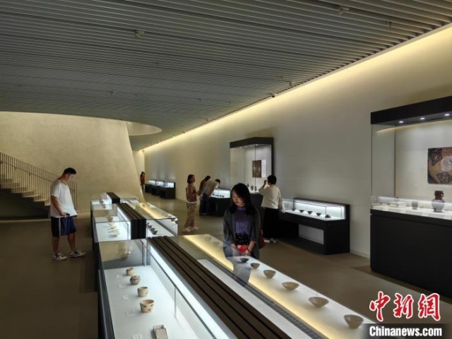 9月22日,民众参观“侨韵臻藏 大吉中华 迎国庆上海侨界收藏宋元时代吉州窑瓷器暨标本展”。 中新社记者 范宇斌 摄