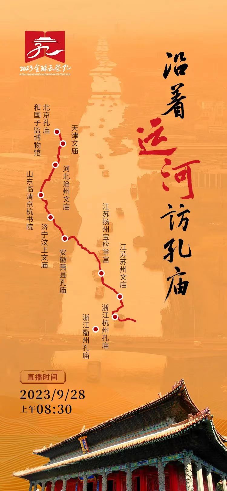 盛世华章,和合大同。由尼山世界儒学中心、中国孔子基金会主办,中国孔子网、济宁市文化传承发展中心承办的2023全球“云祭孔”网络直播活动将于9月28日上午8:30正式启幕,“沿着运河访孔庙”专题活动同步推出。